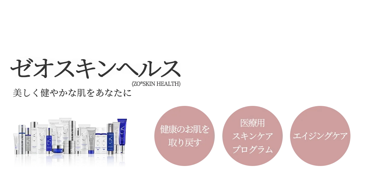 医療用スキンケアプログラムゼオスキンヘルスはアメリカの皮膚科医であるDr.オバジが30年以上の研究と経験により辿り着いた、健康で美しい皮膚を取り戻す為のスキンケアプログラムです。肌質改善の集中ケアや健康な肌へと改善した肌質を保持するメンテナンス、日頃から肌トラブルを未然に防ぐ毎日のスキンケア、お一人おひとりのお肌の状態やお悩みにあわせて、アイテム、使用量、使用回数などをカスタマイズして提供します。