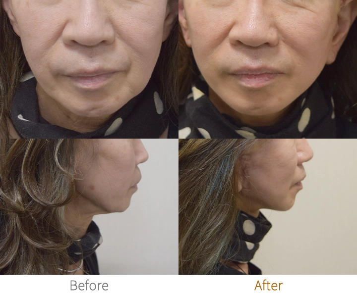 【施術内容】顔の皮膚や筋膜を持ち上げて、しわやたるみを目立たなくする手術。特にほうれい線や口元、フェイスラインのたるみを改善し、自然で若々しい印象へと導きます。